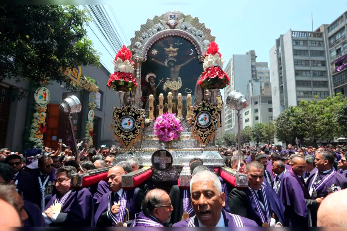 Lima, 26 de octubre de 2025. Miles de fieles inundaron las calles del Centro Histórico de Lima en la tradicional procesión del Señor de los Milagros, una de las manifestaciones religiosas más importantes de Perú. La imagen del Cristo de Pachacamilla, pintada en el siglo XVII por un esclavo angoleño en una pared del conventillo de Pachacamilla, recorrió su ruta habitual desde el Monasterio de las Nazarenas hasta la iglesia de San Francisco, acompañada por el canto de coros, sahumadoras y el aroma característico del incienso que impregna el aire como un velo de tradición limeña. En este año de renovada fe, el anda pasó por avenidas emblemáticas donde el bullicio devoto se entreteje con el rumor de la ciudad eterna.