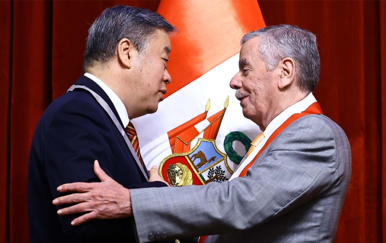 En una ceremonia realizada este viernes 19 de diciembre en el Palacio Legislativo, el presidente interino del Congreso, Fernando Rospigliosi, encabezó la entrega de la Medalla de Honor del Congreso en el grado de Gran Oficial al embajador de la República Popular China, Song Yang, en reconocimiento a su labor por fortalecer las relaciones diplomáticas, económicas y culturales entre Perú y China. El acto contó con la participación destacada del presidente de la República, José Jerí Oré, quien resaltó la importancia de China como socio comercial clave y reafirmó la voluntad del Estado peruano de profundizar la asociación estratégica bilateral.