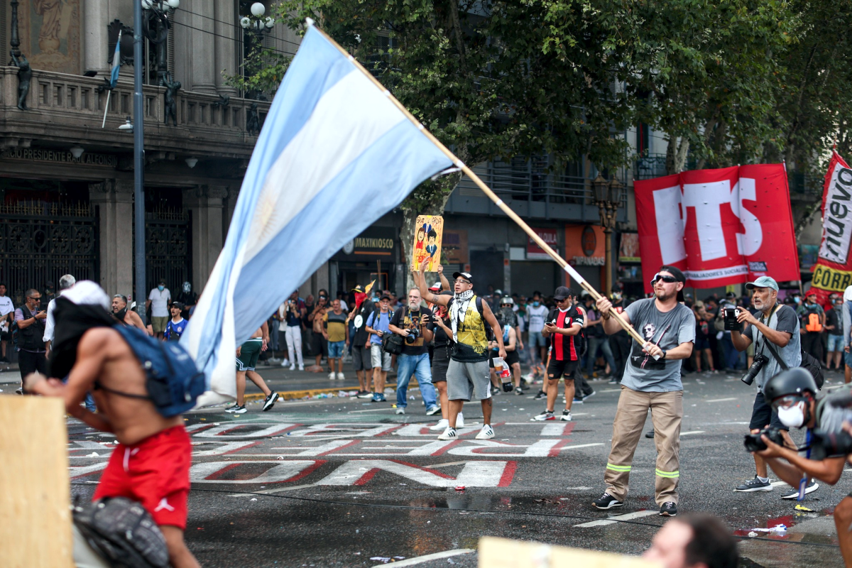 La aprobación se produjo en medio de intensas protestas convocadas por la Confederación General del Trabajo (CGT) y otras centrales obreras. Miles de manifestantes se concentraron frente al Congreso desde el 11 de febrero, con pancartas y consignas contra lo que denominan «esclavitud moderna». La movilización escaló a enfrentamientos violentos: grupos arrojaron piedras y bombas molotov, mientras la policía respondió con gases lacrimógenos, balas de goma y cañones de agua. El saldo oficial reportó al menos 71 detenidos y varios heridos (incluyendo 12-15 agentes), según fuentes de Seguridad y reportes periodísticos de Infobae, El País y France 24.
